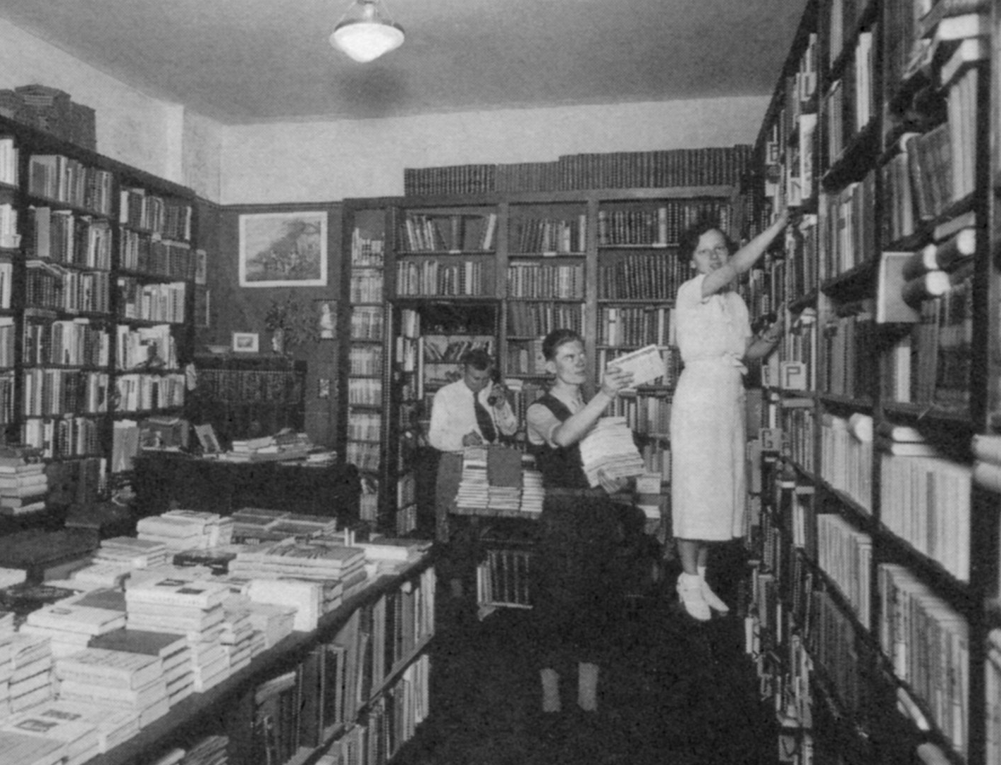 Peter Wenzel, Kurt Bosy und Hilde Wenzel in der Buchhandlung in der Grollmannstraße