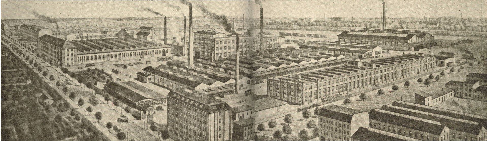 Das Firmengelände von Siemens Plania in der Herzbergstraße um 1900. Rechts unten im Bild die späteren Epeco-Hallen.