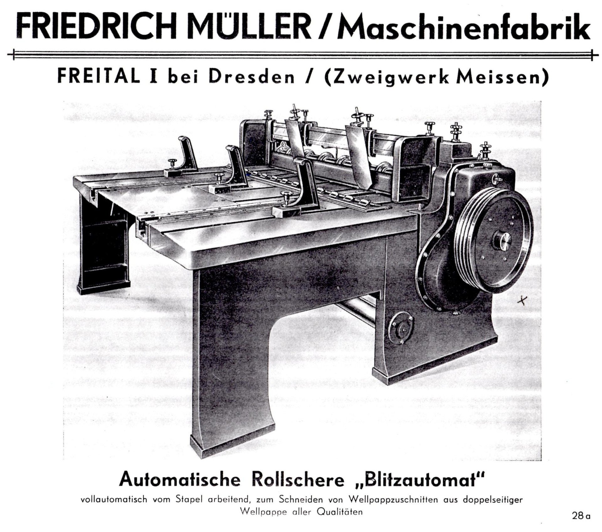 Hinter dieser Maschine stand ein großer Tisch, auf denen die geschnittenen Formate fielen und auch schnellstens von den Frauen weggenommen wurden.“
